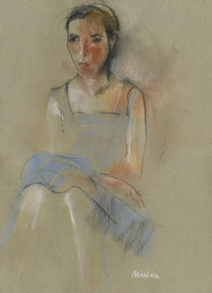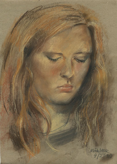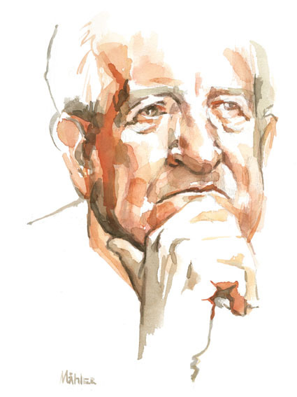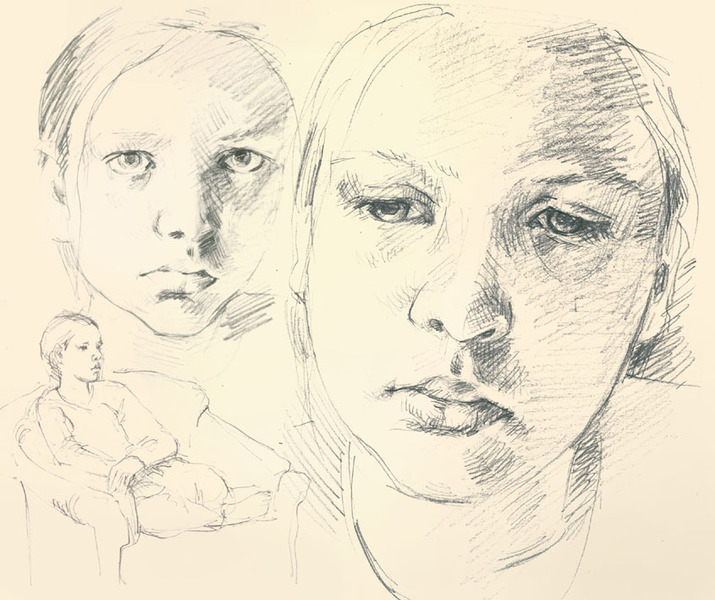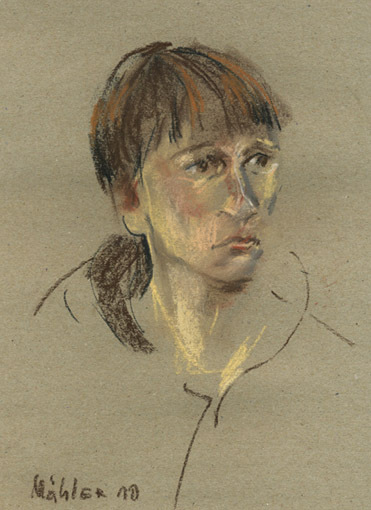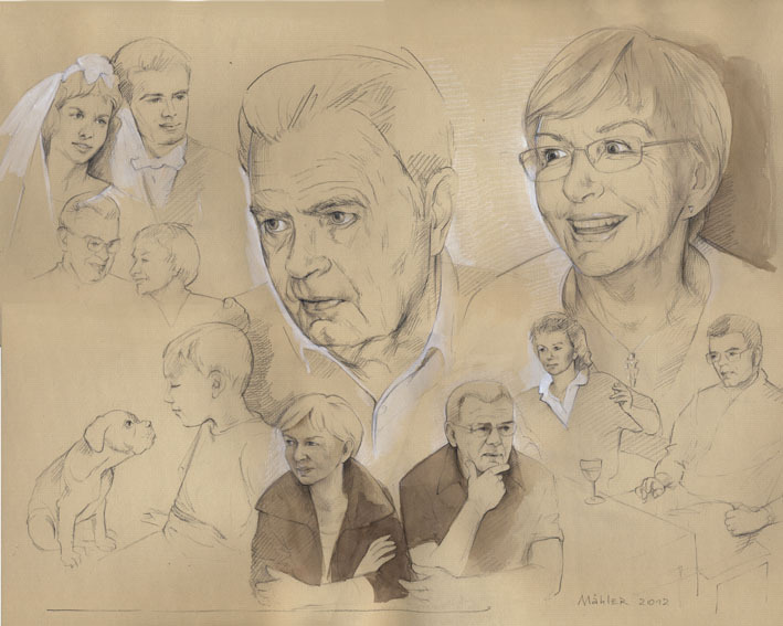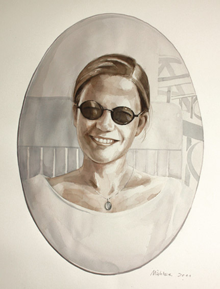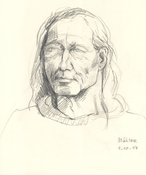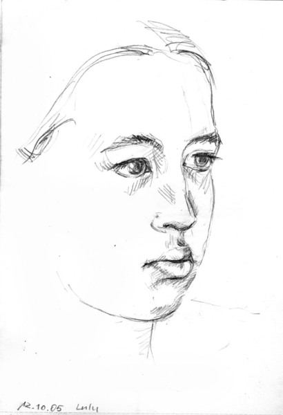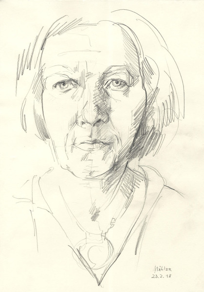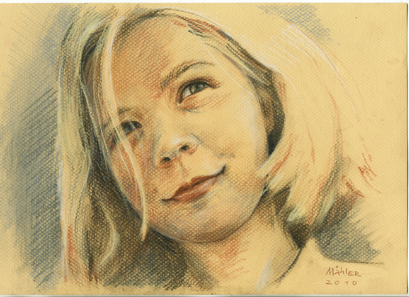 Zu einem gemalten oder gezeichneten Portrait gehören immer drei: der Portraitierte, der Zeichner und der Betrachter. Eine Portraitzeichnung verringert die Distanz zwischen allen Beteiligten und ist nicht nur Abbild eines Menschen, sondern auch Ergebnis einer Interaktion. Ich zeichne und male deshalb sehr gerne direkt nach dem Modell. Aber erstaunlicherweise funktioniert die Herstellung von Nähe auch beim Zeichnen nach Fotos, auch dabei schwingt die Befindlichkeit und Stimmung des Portraitierten und seine Haltung zum Betrachtetwerden mit. Die äußerliche Übereinstimmung mit dem Modell können Sie bei Auftragsarbeiten natürlich voraussetzen.